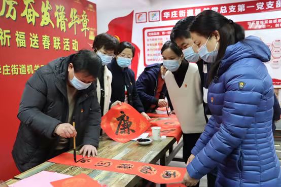 无锡经开区纪工委把廉洁文化融入传统节日,以“‘廉’心同行迎新年,踔厉奋发谱华章”为主题开展送春联活动,给年味添“廉味”。图为近日,该区华庄街道纪检干部书写、赠送廉洁春联场景。(邹政一)