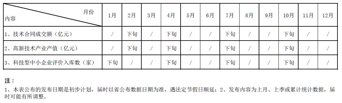 2023年无锡市科技局统计信息发布日程表